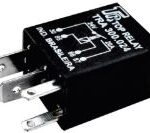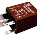 MINI RELE AUXILIAR, 4 TERMINAIS SENDO 2 (2,8MM) E 2 (6,3MM) 12V 30A COM RESISTOR – MARROM