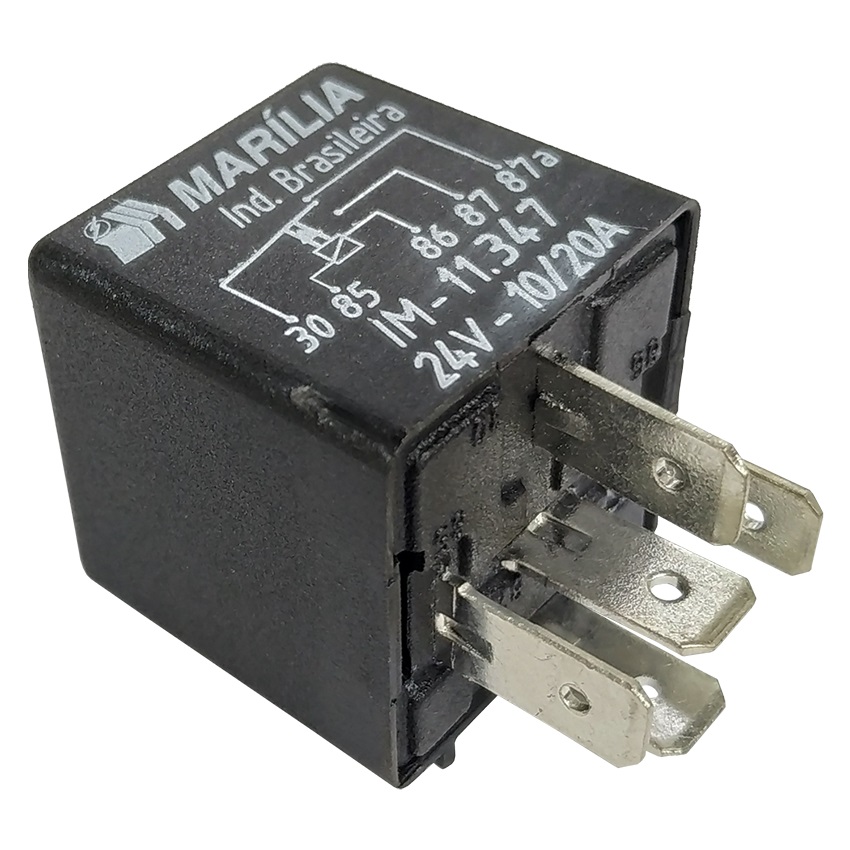 RELE AUXILIAR COM SUPORTE 5 TERMINAIS NF / NA 10 / 20A 24V – USO GERAL: CAMINHOES E ONIBUS.